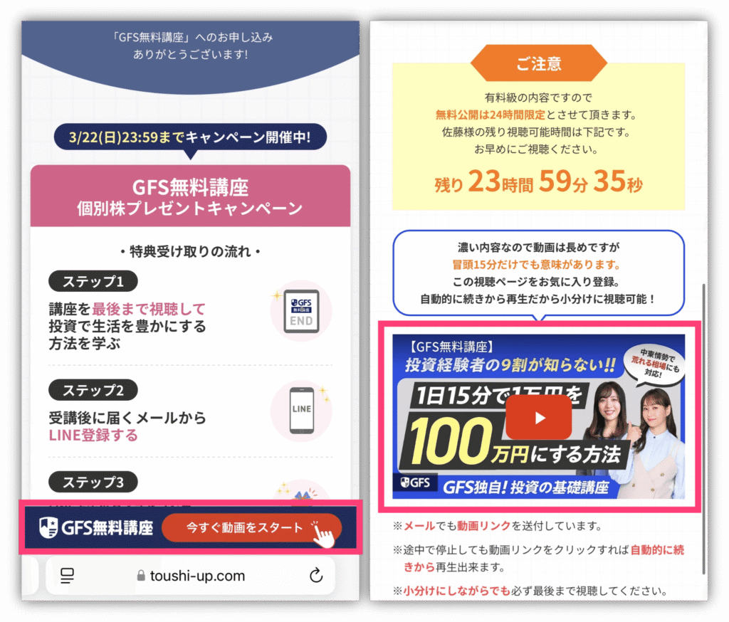 これでGFS無料講座の講義動画が見れるよ🙌
