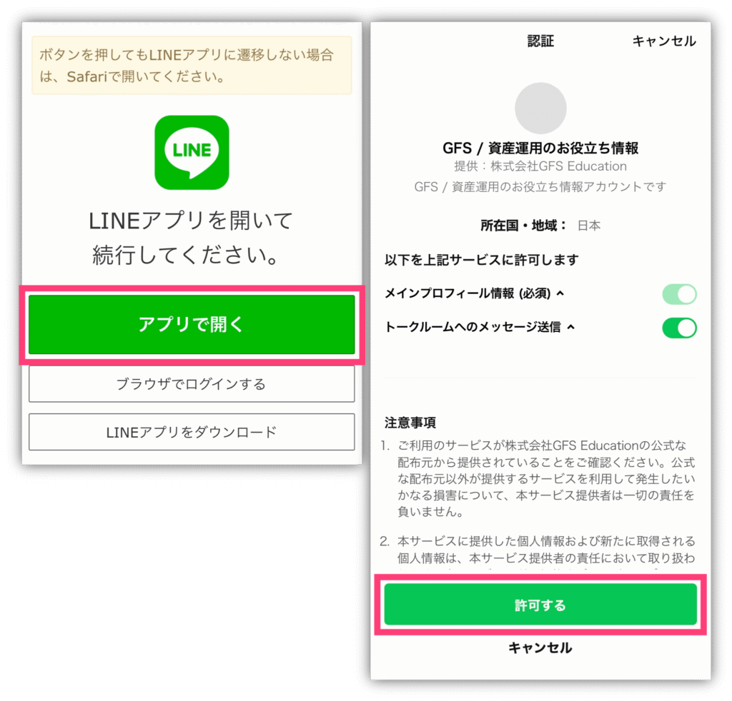 LINEの画面が開くので、「アプリで開く」→「許可する」の順でタップ❣️