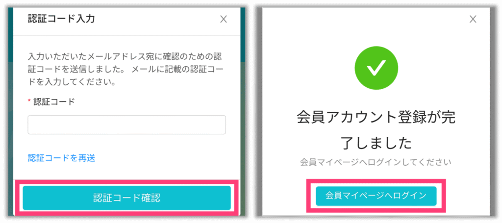 届いた認証コードを入力して「認証コード確認」をタップしてね。