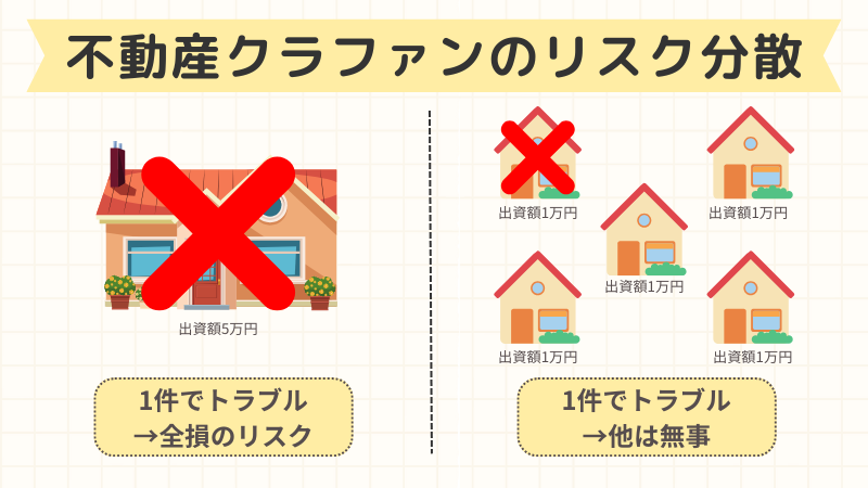 1つの案件に5万円全部を投資すると、もしもその案件でトラブルがあった時に、大きな損失を受けるリスクがあるよね。