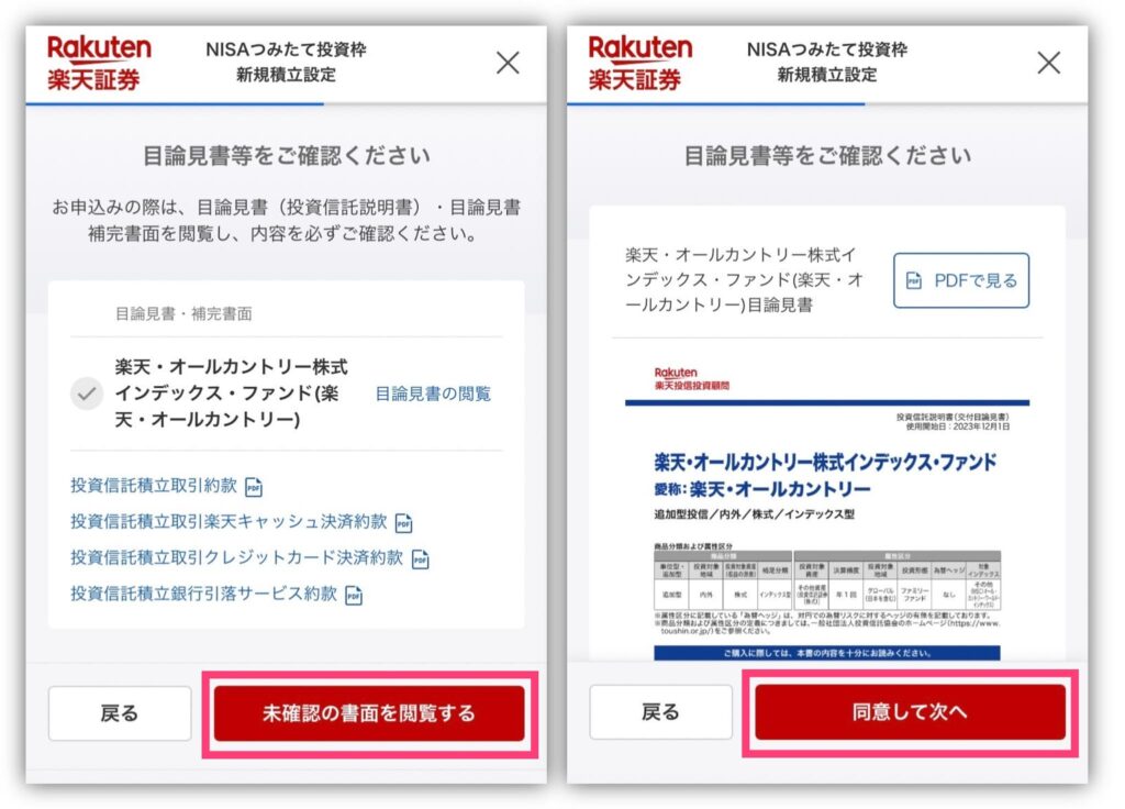 「未確認の書面を閲覧する」をタップし、目論見書等を確認しよう!