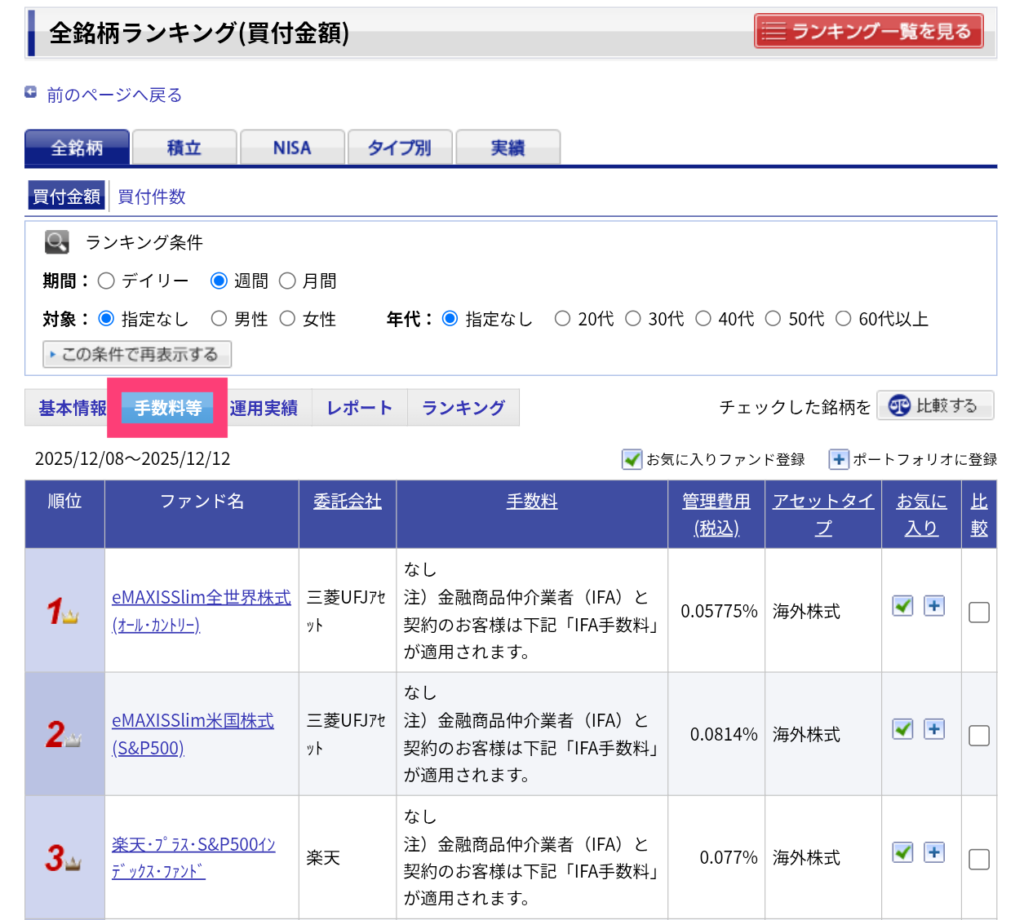 さらに、買付ランキングを見れば、手数料が安くてみんなが選んでいる商品がすぐわかる☺️