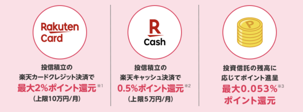 - 投信積立の楽天キャッシュ決済で、最大0.5%ポイント還元