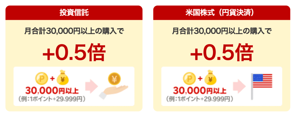 - 投信信託の残高に応じて、最大0.053%のポイント還元