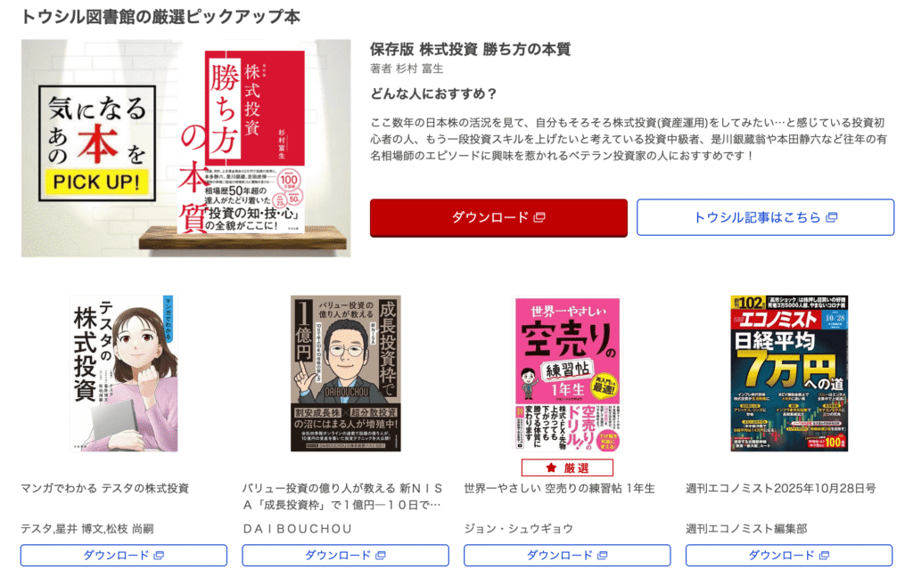楽天証券なら、最新のビジネス情報や投資の本が無料で手に入るよ🙌🏻