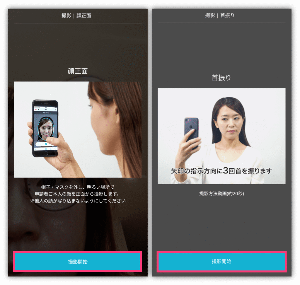 準備ができたら「撮影開始」をタップして、「顔正面」と「首振り」を撮影してね❣️