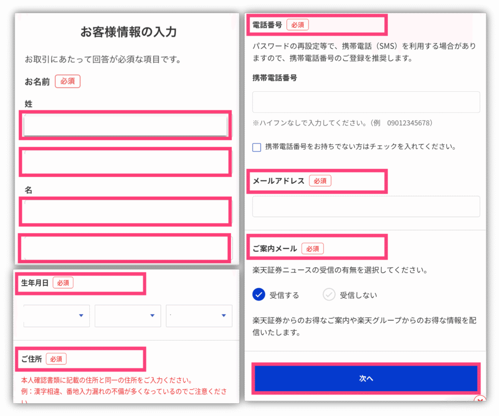 名前、生年月日など個人情報を入力して「次へ」をタップ!