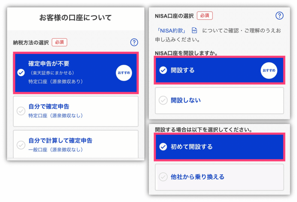 他に、iDeCoやFX口座、信用取引口座の申し込みも選んでね☺️