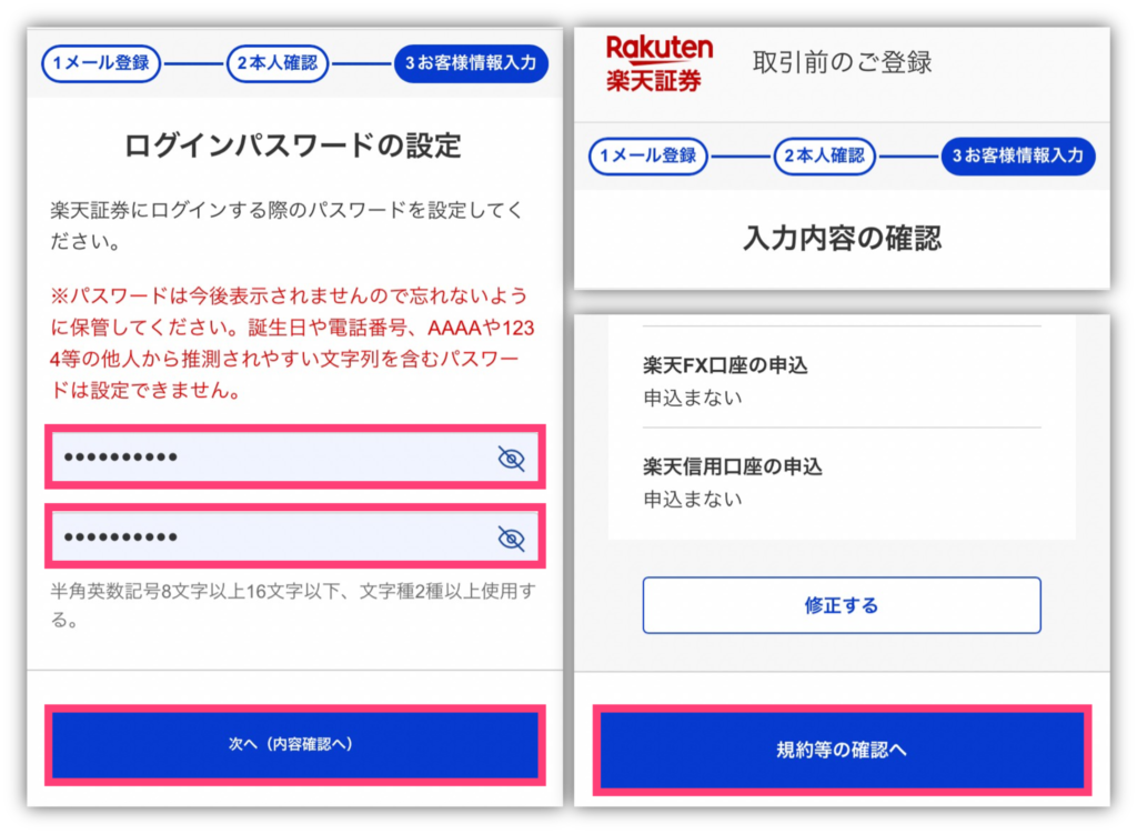 続いて、楽天証券にログインするためのパスワードを設定するよ!