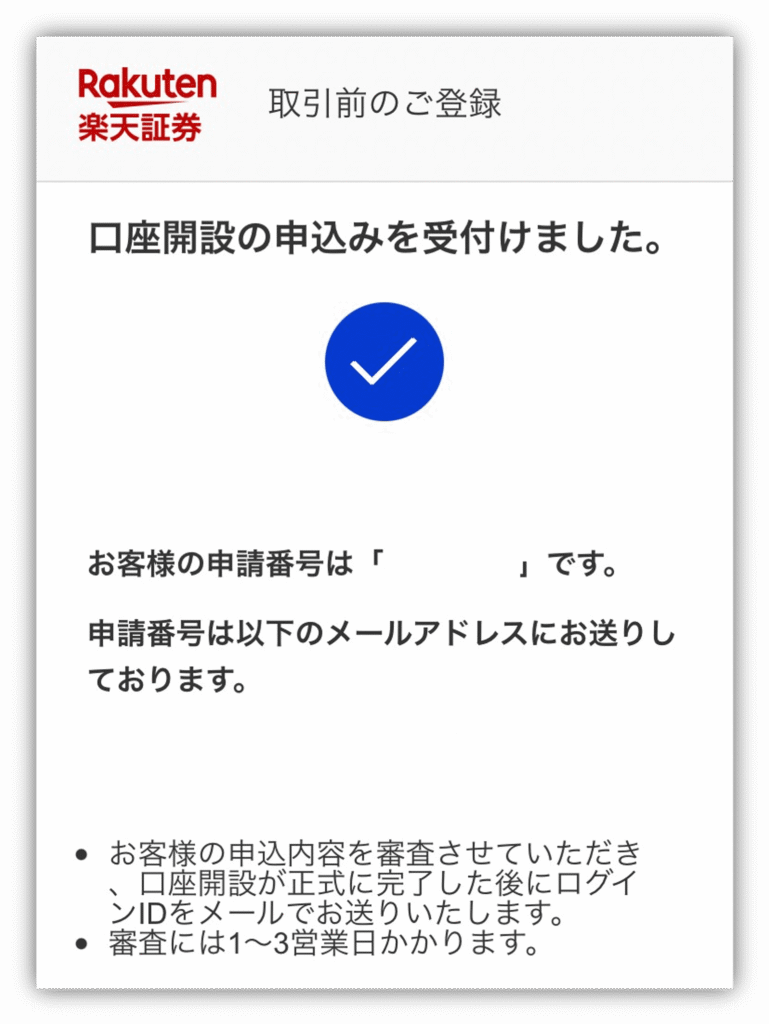 楽天証券の審査が完了すると、最短翌営業日でログインIDがメールで届くから、あとは待つだけ😘