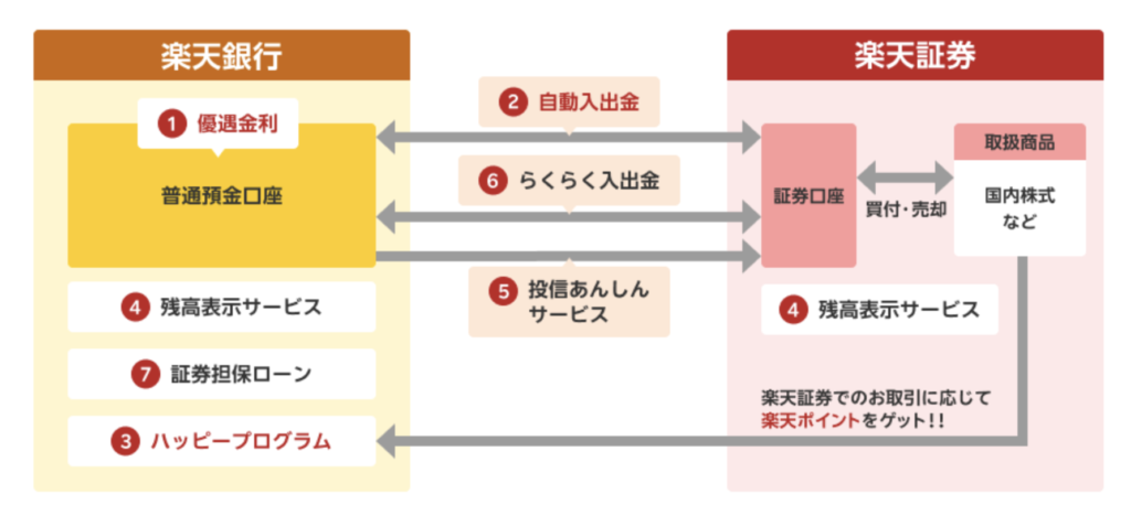 楽天証券と楽天銀行の口座を連携させるだけで、7つのサービスが付いてくる仕組み🧡